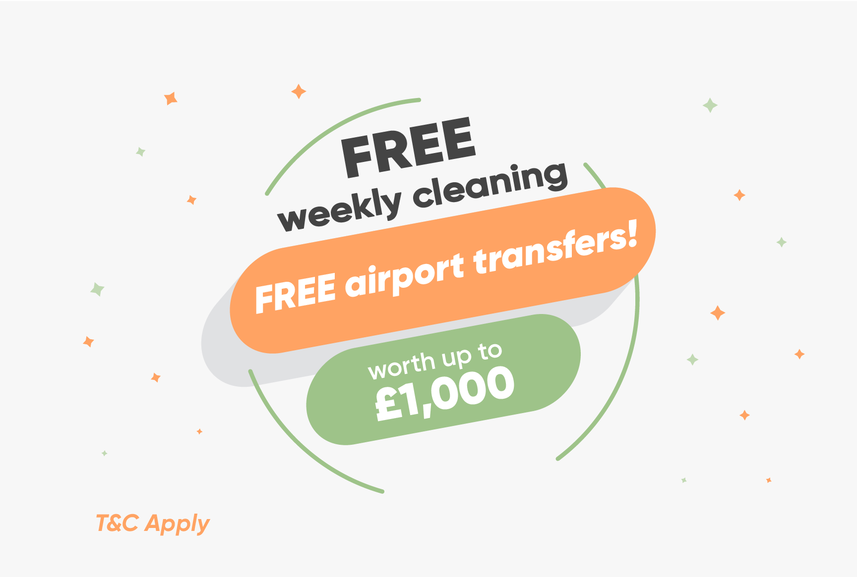 You’ll receive 25 weeks cleaning worth £1,000 + 2 FREE airport transfers.